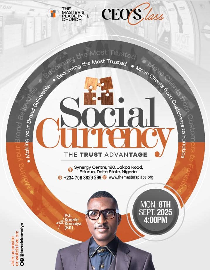 “This is not a theory but tested truth. When you master the currency of trust, you will never struggle for relevance, influence, or recognition again. Your next level in business, leadership, and destiny is locked in your ability to command trust. Don’t miss it for anything,” Komaiya emphasized.